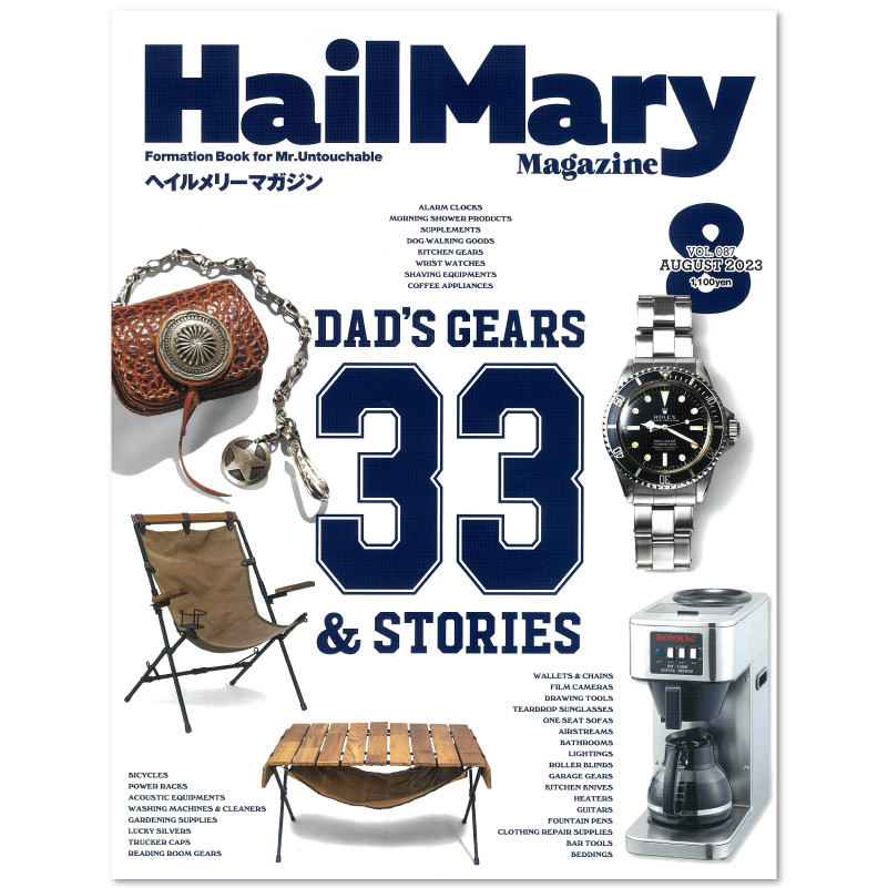 ヘイルメリーマガジンは男らしい一生を貫きたい男のための雑誌です。もう、自分は老いるだけだと思いかけている人、男性ファッション誌の偽善性に辟易している人、そして人生のチャンスは二度とやってこないと諦めかけている人たちに、まだ見ぬすばらしき『知的不良、Mr.Untouchable』の世界をお届けします。