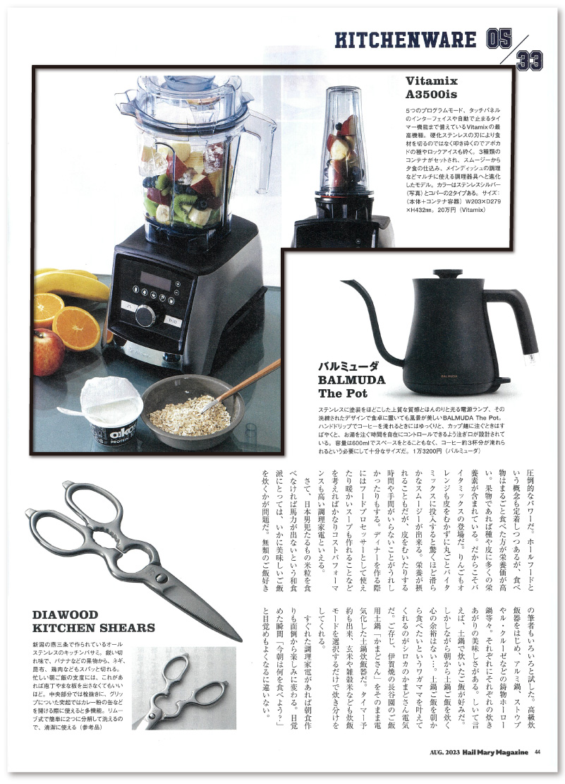 Vitamix A3500i Sが「HailMary Magazine(ヘイルメリーマガジン) 2023年8月号」に掲載されました。