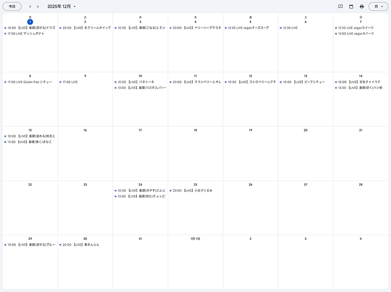 12月のインスタライブスケジュール