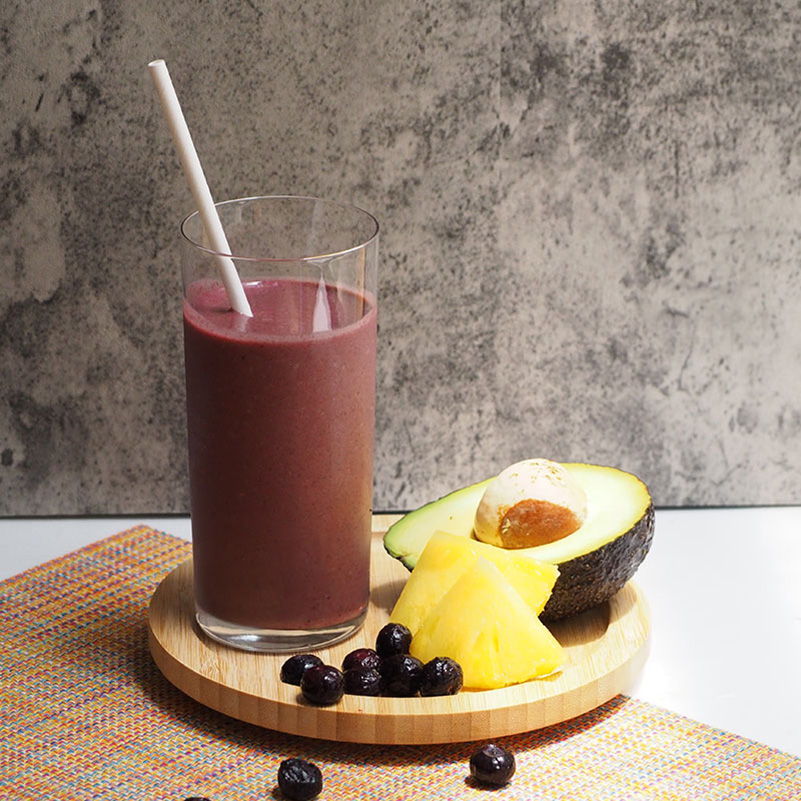 低糖質ながらも満足感のあるスムージー。アボカドの良質な脂質が満腹感を持続させ、ブルーベリーのポリフェノールが体を内側から若々しく保ちます。