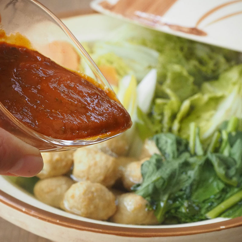 発酵調味料である味噌や旨味成分たっぷりの昆布を使ったチゲ鍋のタレは、冬にぴったりの万能タレ。コチュジャンや生姜が体を芯から温めます。