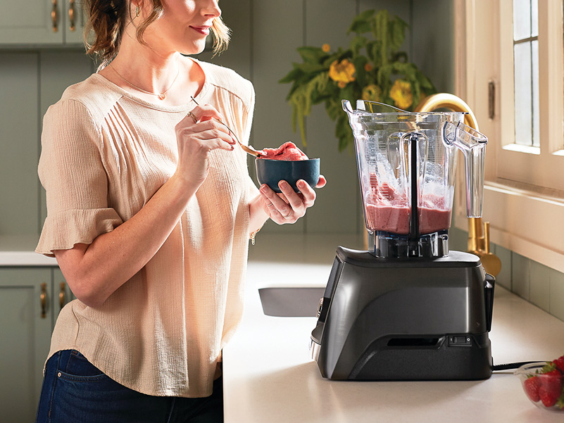 忙しい朝でも、材料を入れてボタンを押すだけで完成。スムージーはわずか60秒、スープは摩擦熱を活用して6分以内に温かく仕上がります。
