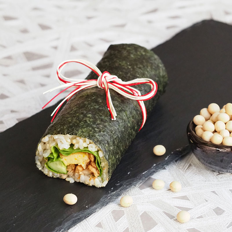 ヘルシーな大豆ミートや豆腐を使ったお肉不使用の恵方巻き。