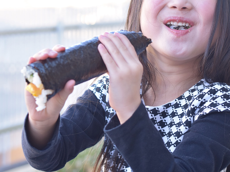 恵方巻きは、無言でその年の恵方を向いて食べることで、無病息災を願います。