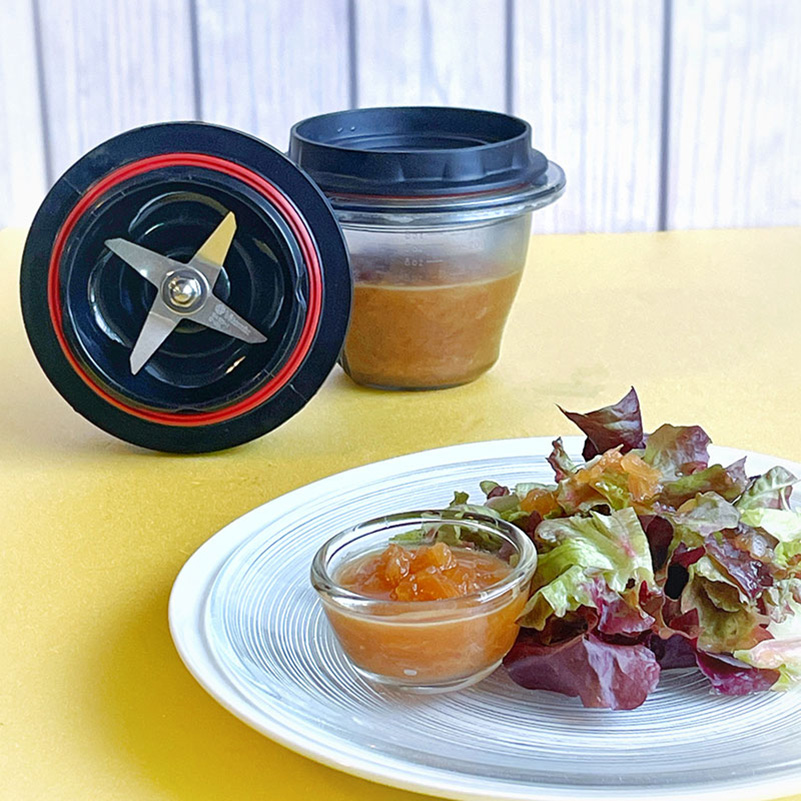 バイタミックスで玉ねぎを均等に攪拌し、栄養素を最大限に引き出した手作りドレッシングが完成します。添加物不使用なので家族の健康に役立ちます。
