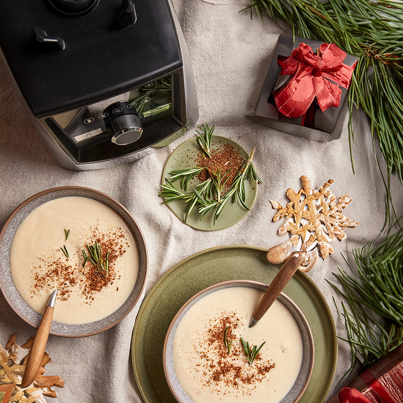 バイタミックスなら約5〜6分回すだけで食材同士の摩擦熱によりホットスムージーが作れます。
