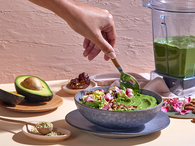 脂質が多く濃厚な食材でも、バイタミックスの強力なブレードと高速回転により、空気を含ませながら軽やかで口当たりのよいスムージーに。