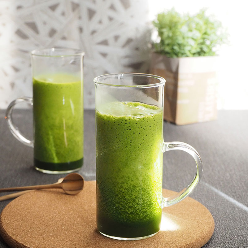 ほうれん草と小松菜で鉄分やカルシウムが補え、葉野菜の栄養をまるごと摂れる1杯。希釈済みのめんつゆを加えることで、味のバランスも整い、無理なく飲める和風テイストに仕上がります。