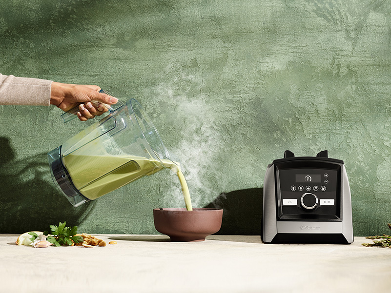 バイタミックスなら、5〜6分攪拌するだけで湯気が立つほど温まり、豆乳スープや味噌ポタージュもお鍋いらずで完成します。