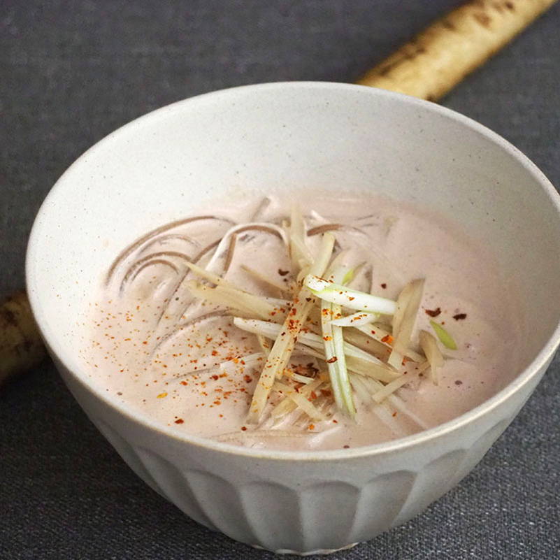 硬いごぼうやくるみも、バイタミックスなら滑らかなつゆに調理可能で、素材の栄養を余すことなく摂れるため、飲む血管ケアが可能な一品に仕上がります。