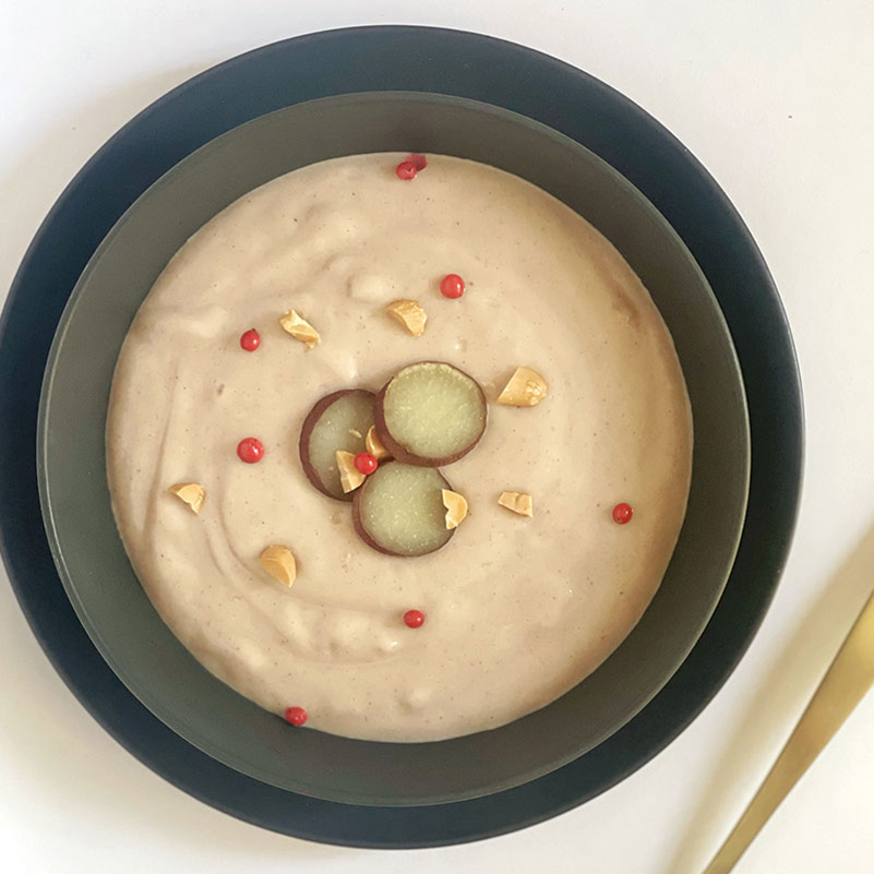 甘さとコクが深いのに、バイタミックスで撹拌することで負担の少ない飲み心地に。
