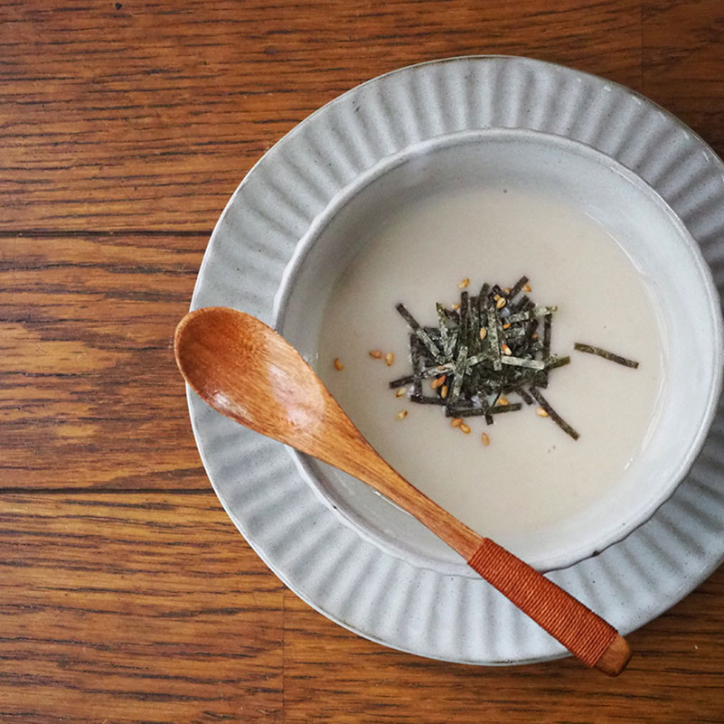 じゃがいもの自然なとろみと優しい甘みが引き立ち、バイタミックスを使用すれば酒粕も滑らかに混ざり、口当たりの良い仕上がりに。