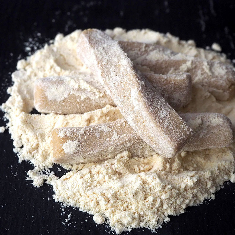 生大豆から作るきなこは香ばしく、たんぱく質・食物繊維・大豆イソフラボンがたっぷり。精製糖不使用で罪悪感なく食べられます。
