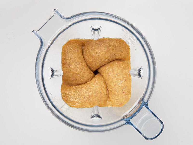 バイタミックスで豆腐と甘酒を攪拌することで、だまになりやすく時間がかかる生地作りも瞬時に出来上がります。