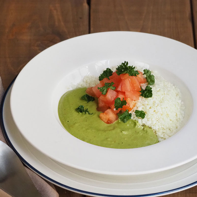 バイタミックスならカリフラワーをライス状に、ソースはクリーミーに一台で完成。加熱せずとも素材の香りと辛味が引き立ち、巡りを促す1品です。