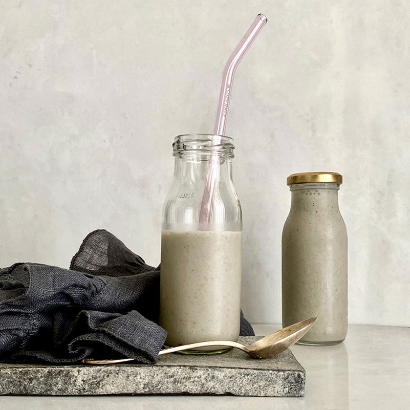 バナナのカリウムと食物繊維が巡りを整え、すっきり軽やかな朝へ導きます。アーモンドやカルダモンが香る濃厚な味わいながら、余計な負担を感じにくい1杯。