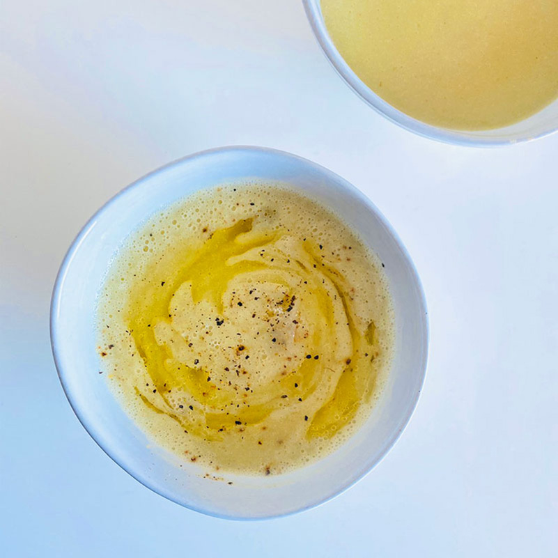 黒ごまの香ばしさが広がるやさしいスープ。黒ごまにはマグネシウムやセサミンが豊富で、代謝とホルモンバランスをサポートします。さつまいもの自然な甘みと牛乳のまろやかさが加わることで、疲れた夜にもホッとできる1杯に。