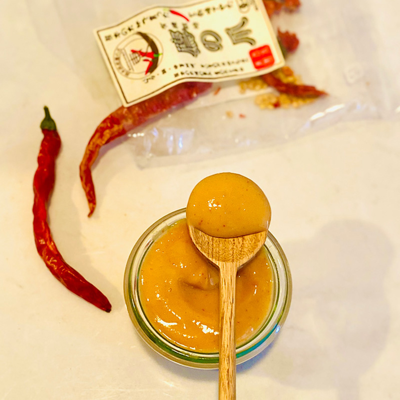 バイタミックスなら鷹の爪や味噌もなめらかに混ざり、手作りとは思えないほどツヤ感のある仕上がりです。