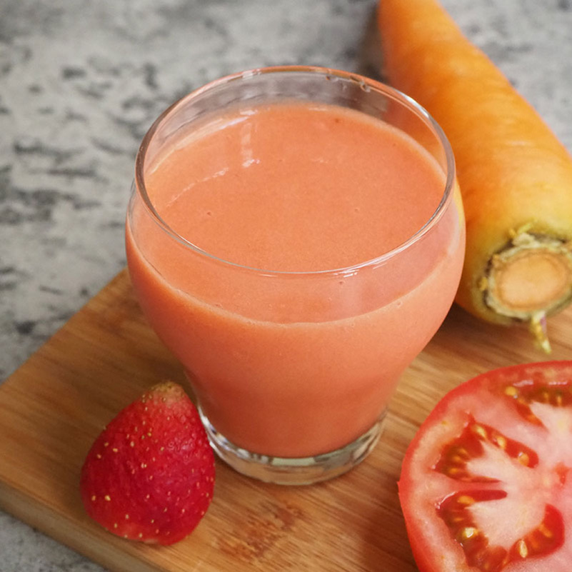 バイタミックスならトマトやにんじんの硬い繊維まで細かく砕けるので、朝の外出前でも負担なく続けられる1杯になります。