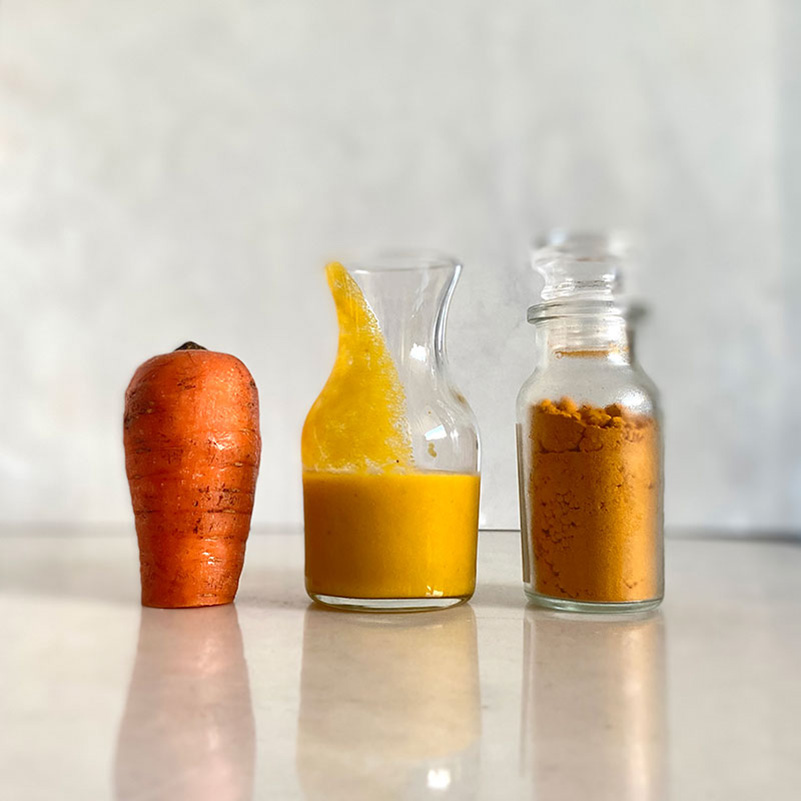 にんじんとりんごの甘みにターメリックを合わせることで、季節の変わり目に揺らぎやすい体をすこやかに保ちたい時に助けになります。にんじんのβカロテンは鼻や喉の粘膜の健康を守り、外的刺激が気になる時期にも心強い存在。