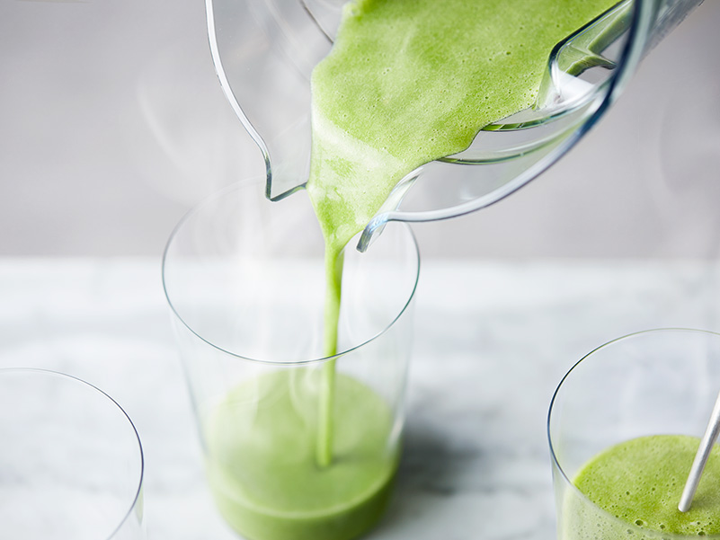 バイタミックスは繊維質の多い青梗菜もなめらかに均一化してくれるため、野菜を無理なく飲める味に整えてくれます。