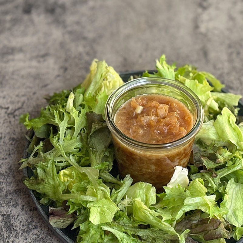 「サラダを食べているのに体調がイマイチ」そんな時は、市販のドレッシングを卒業して、酸化していない新鮮なオメガ3を摂りましょう。生の玉ねぎとえごま油を使ったこのドレッシングは、血流をサポートし、生活習慣病の予防にも最適です。