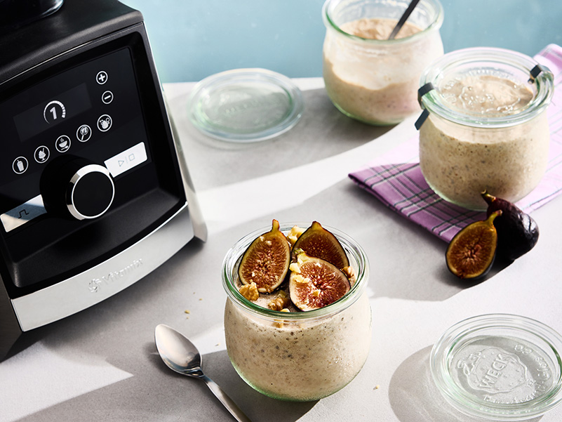 バイタミックスなら、冷凍バナナとヨーグルトをなめらかに攪拌でき、油分も分離せず均一に混ざります。
