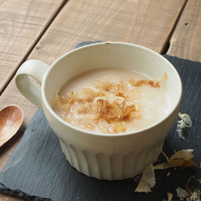 新玉ねぎに豊富なオリゴ糖と、酒粕に含まれる希少なタンパク質「レジスタントプロテイン」がダブルで腸にアプローチする温活スープです。