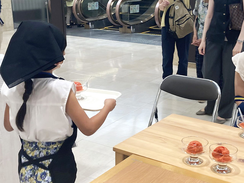 そして、バイタミックスで作ったアイスクリームを店員さんとしてお母さん・お父さんに提供しました。お母さん、お父さんも大喜びしていただきました。