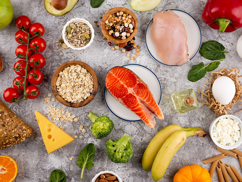 抗酸化作用を含むビタミンACEやフィトケミカル、たんぱく質を豊富に摂取することで免疫力を高め、ウイルスやストレスから身体を守ります。(野菜や果物、肉・魚・大豆製品など)