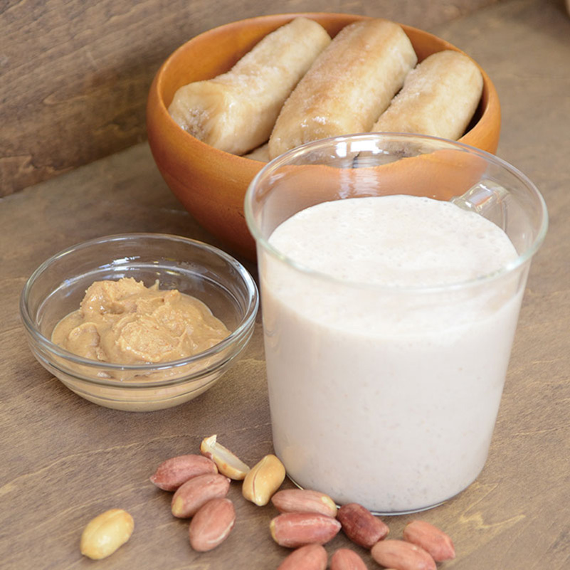 バナナには脳のエネルギー源となるブドウ糖、ビタミンやミネラルなど豊富な栄養素が含まれます。ピーナッツは血糖値の上昇を穏やかにし、眠気を引き起こしづらくする働きも。勉強中のおやつ代わりにおすすめのヘルシーで満足感のあるスムージーです。